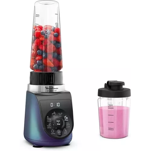 Le Moulinex Blend Up LM190AF0 est un mini blender puissant de 1000 W conçu pour réaliser rapidement smoothies, boissons végétales, sauces et tartinades. Compact, élégant et polyvalent, il propose 8 programmes automatiques et une fonction Pulse pour des résultats précis et homogènes.