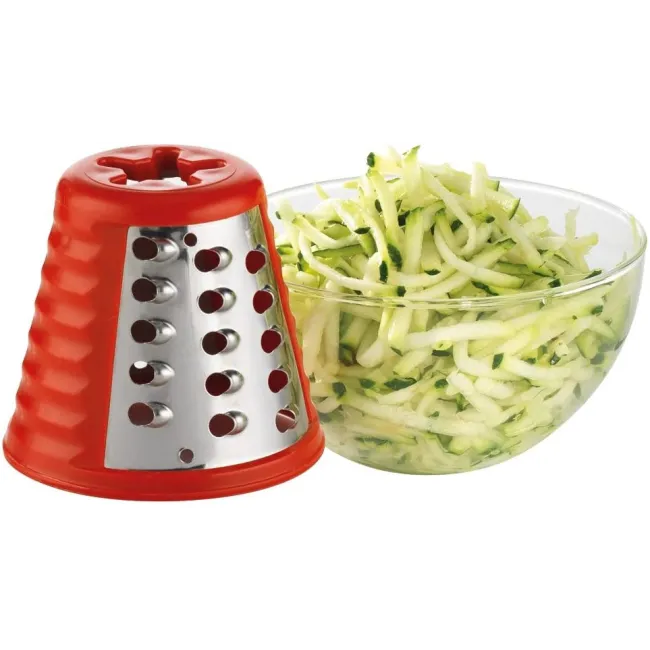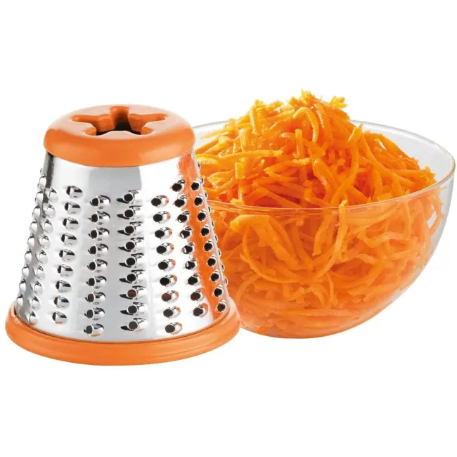 - Accessoires interchangeables : Râper fin, râper gros, trancher et gratter.